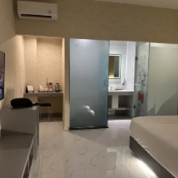 Hotelnya nyaman, interior kamarnya bagus aestethic, pelayanan sangat bagus, Fasilitas baik, untuk sarapan variannya cukup banyak dan rasa baik