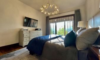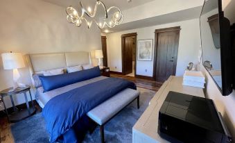 The third bedroom has a king size bed with live edge wood headboard, flat-screen tv, walk in closet with safe, and en-suite private bathroom.