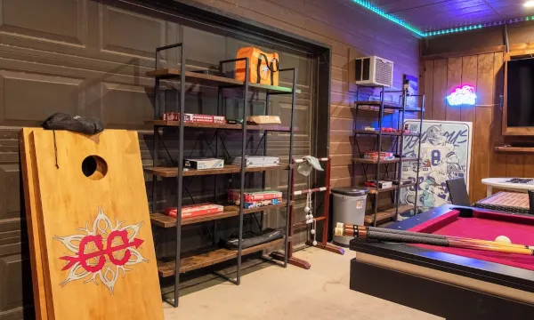 The Game room has 6 ceiling speakers you can either connect to the TV or your phone, along with plenty of games including a pool table, foosball, table hockey, giant jenga, connect four, ladder toss, cornhole, darts, etc. There are also 2 pool speakers you can connect to by Bluetooth Outdoor PyleUSA. There are 4 refrigerators available for use. One full sized refrigerator with a freezer, one mini fridge by back door, one in the outdoor kitchen, and another in the Tiki bar you can use to store your refreshments. There is an outdoor kitchen you can use to cook. Stovetop burners, propane grill, Blackstone, and offset smoker. Please clean and turn off propane after use.