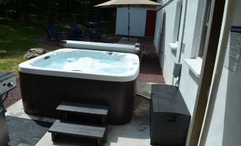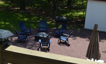 Enjoy a relaxing time in the seven-person hot tub! Patio has a table that seats six along with a picknick table. You have both a propane and wood grill. The fire pit has seating for six to roast your marshmallows!