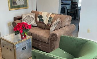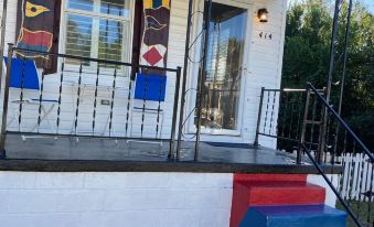 "Crooked Cottage" is a small but elegant space for 1 or 2 guests. King size bed in a large bedroom with 9 1/2 foot ceilings w/ large crown moldings and wood shutters, and internet TV. Sitting room with large internet TV, gigantic ceiling fan, and comfortable seating. Dedicated work space with desk. Large, eat-in kitchen with all appliances and dishes. Washer/dryer. Full bath. Outdoor seating area and large yard.