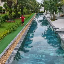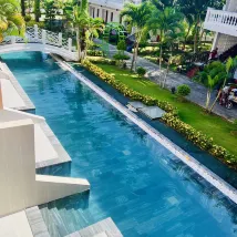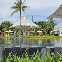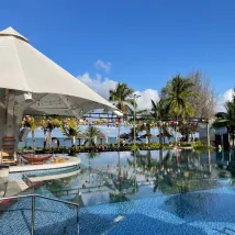The resort provides airport shuttle service which is very convenient. When we checked in at around 7pm, it was raining heavily and the hotel was so generous to give out restaurant coupons for food and drinks so we could stay to have our dinner. Buffet breakfast has quite a variety and with fresh fruit.The pool villa was another great offer from them , we just walked out from our villa and the pool was just outside with at least 500 m long. We have loved it. As our villa was at the end so it was liked a private pool to ourselves. The beaches weren’t too good as waves were so big and we found out two big drainages were leading to the sea from the villa. Overall it was quite a good stay for us.