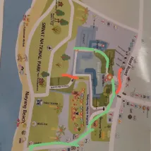 Butuh waktu lama untuk sampai ke laut, kami harus memanjat pagar agar tidak kembali (panah di pagar menyesatkan kami). Ada shuttle ke laut, beroperasi setiap jam, sesuai jadwal