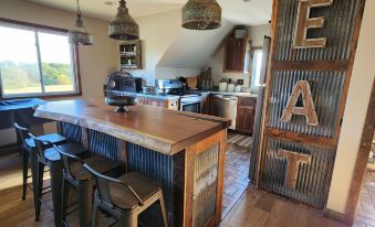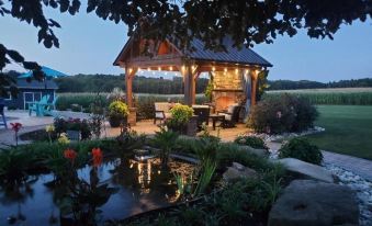 Welcome to our backyard paradise! We’d like to invite you to relax in our country loft, overlooking an inground pool, koi pond, firepit and pavilion. Our home, surrounded by organic crops, sits on 115 acres, evoking a sense of peace and tranquility. You are welcome to enjoy a fire in the pit, or swim in the heated pool when the weather permits. We are conveniently located 3 miles between Gambier and Kenyon College and Mount Vernon and the Nazarene University. This is a private stand alone, unit with a private entrance and driveway located in our backyard above a workshop. It is accessed via a stairway and is not suitable for people with limited mobility. It is a spacious 968 square foot, one bedroom apartment with a fully equipped kitchen, 65 inch TV, and top of the line, Olhausen pool table and matching tabletop shuffleboard for your entertainment. It is game themed with lots of natural light, rustic in décor, but loaded with amenities. The kitchen cupboards are made from recycled barn siding with corrugated tin inserts that came from an old barn. The kitchen countertops are made from zinc that over time develops a beautiful patina and the bar countertop is a walnut live edge slab. The cozy bedroom features a queen size bed with 100% cotton sheets, small TV and antique dresser to store your belongings. The roomy bathroom features a corner shower stocked with R & R Essentials toiletries. The living room, with a comfortable La-Z-Boy sofa, matching chair and recliner will make you feel right at home. We are truly in the country but close to town. We live on a less traveled country road where you can take a walk and enjoy all the sounds that nature has to offer or sit by the koi pond and watch the fish as you listen to the rush of water cascading over the rocks into the pond. We will greet you upon arrival and will be here for your assistance, but not in your way. Whether you are here on business, visiting family or just wanting a romantic getaway, this is the place for you. Wont you come and see for yourself! About pets:No pets allowed.About children:Adults only.About smoking:Smoking is not permitted.About events:No events allowed.