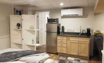 Your totally private entrance welcomes you to a quiet studio with full bathroom and a SPA like walk in shower. There is a queen-sized memory foam bed with 2 nightstands and a room divider for added privacy. This brightly lit space has dimmable recessed lighting , beautiful new ceilings and freshly painted walls. A full-size couch with 2 built in power recliners let you spread out and relax in front of a 42" TV. Enjoy access to WIFI, Netflix, Roku Sound Bar, or use your own streaming services. A drop-leaf bar height table with ample seating and work area for 2. The Kitchenette has a granite countertop, bar-sized sink, new fridge with freezer, Keurig coffee machine, toaster, electric tea pot, with all the fixings to get you started. Note: There is not a full kitchen or laundry. Owners live upstairs and so unfortunately hearing footsteps above is unavoidable but we will refrain from tap dancing during your stay. See a 1 minute video tour by searching online for "Plymouth 1620 Studio"