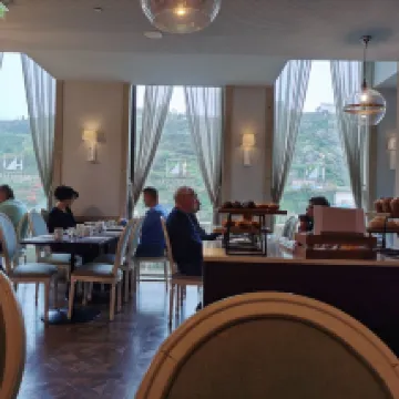동루이스 다리가 잘 보여요. 아침식사 뷔페는 만족스럽고, 식사 후에 자연스럽게 강변산책을 하실거에요. 모루공원역으로 대중교통 이용하려 이동헤야 하지만, 볼트를 타고 이동한다면, 문제되지 않습니다..