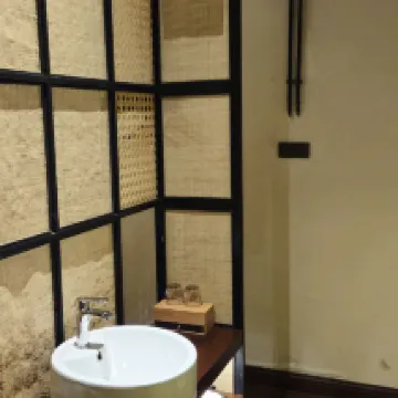 Namun, kamarnya sangat kecil sehingga sulit untuk membuka koper! Hanya ruang yang terlihat di foto yang tersedia. Karena bangunannya tua, kedap suaranya buruk. Jika Anda menginap di lantai satu, Anda akan mendengar suara air sedang digunakan dan ponsel Anda bergetar di lantai dua di tengah malam! Jika Anda menginap sendirian, suara-suara ini bisa sangat keras dan sering terdengar. Tidak ada tempat yang memadai untuk mencuci muka atau menyimpan losion kulit! (Tidak ada tempat untuk menaruh riasan Anda juga.)