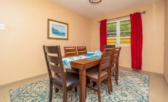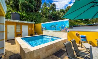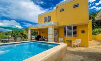 Nestled in hills of Naguabo, this delightful house offers 5 bedrooms with a mix of 1 king, 3 queen, and 1 full bed. Guests can enjoy amenities like solar energy, solar hot water, WiFi, a washing/dryer machine, AC, and more. With 3 bathrooms equipped with hair dryers and showers, there's plenty of space for everyone. Relax in the cozy living room with a futon for additional sleeping arrangements. 15-person saltwater spa, lots of outdoor seating and yard games. BBQ on the back patio. Your stay at this amazing property will be unforgettable. We'll be available to answer any questions while you stay at our place.