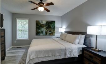 South Asheville Townhome, with outdoor space, and contemporary design. This 3-bedroom townhome features two king and one queen bedrooms. The unit also provides 1 garage parking space and 2 dedicated parking spaces behind the townhome. Located in South Asheville, it is drivable to shopping, restaurants, breweries, galleries, and live music venues. Biltmore Park and the Blue Ridge Parkway are also just a short drive away.