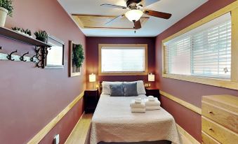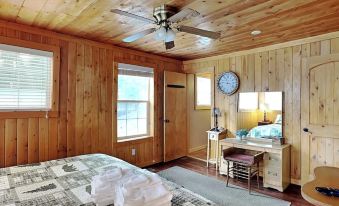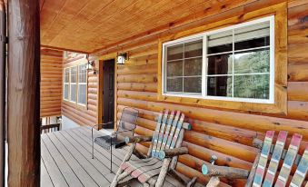 Buat diri Anda nyaman di pondok ber-AC Anda, yang memiliki fitur perapian.Terdapat patio pribadi.Dapur dilengkapi dengan oven, kompor, dan microwave. Kenyamanan meliputi pengering dan meja setrika.