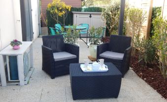 - The cotinière - in ground garden spacious new studio of 25 m2 with private entrance in enclosed garden: Terrace: Pergola with its living room - garden table and chairs. electric barbecue-