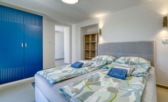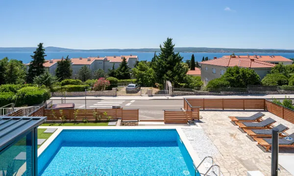 Modern, comfortable single-family house "Perla", 2 storeys. 1 km from the centre of Selce, in a sunny position, 600 m from the sea, 600 m from the beach, located by a road. Private: property 600 m2 (fenced), garden 100 m2, swimming pool angular (6 x 4 m, depth 140 cm, seasonal availability: 01.May. - 31.Oct.). Outdoor shower, terrace (70 m2), garden furniture, pool maintenance by the owner/gardener. In the house: internet access, washing machine. Parking (for 3 cars) at the house on the premises. Shop 300 m, restaurant 350 m, bus stop 1 km, pebble beach 600 m. The owner does not accept any youth groups. 6-room house 140 m2 on 2 levels. Comfortable furnishings: living/dining room with Scandinavian wood stove, satellite TV and air conditioning. Exit to the terrace. 1 room with 1 bed (160 cm, length 200 cm). Exit to the terrace. 1 room with 1 bed (90 cm, length 200 cm), air conditioning. 1 room with 1 double bed (2 x 80 cm, length 200 cm), air conditioning. Exit to the terrace. Open kitchen (oven, dishwasher, 4 induction hot plates, toaster, kettle, microwave, freezer, electric coffee machine). 2 showers/WC. Wood heating, forced-air heating. On the lower ground floor: 1 room with 2 beds (90 cm, length 200 cm), shower/WC and air conditioning. Exit to the terrace. 1 room with 1 double bed (2 x 80 cm, length 200 cm), shower/WC, satellite TV and air conditioning. Exit to the swimming pool. Forced-air heating. Large terrace 40 m2. Terrace furniture, barbecue (portable), deck chairs (6). View of the sea. Facilities: iron, mosquito net, baby cot, hair dryer, logs (free). Internet (WiFi, free). Please note: 1 small pet/ dog allowed. Fire extinguisher.