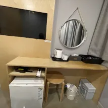 Kamar bersih dan higienis, dengan pemanas lantai, dan sangat nyaman untuk tidur di malam hari. Ada juga kopi sarapan encer gratis di pagi hari, dan isi sarapannya cukup kaya. Resepsionis cukup ramah dan dengan sabar memberi tahu kami banyak hal yang perlu diperhatikan saat bepergian. Rasio harga/kinerjanya tinggi. Sangat mudah untuk mencapai banyak tempat wisata di area ini, tetapi kamarnya sangat kecil. Hanya ada satu lorong kecuali tempat tidur dan lemari lainnya .