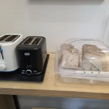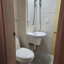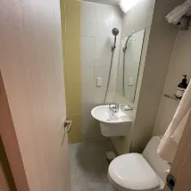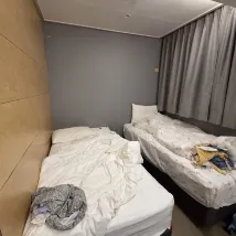 Meskipun kamarnya tidak besar, Anda tetap dapat membuka tiga koper sekaligus. Kamarnya bersih dan higienis. Tempat tidurnya sangat nyaman dan kedap suara. Saya tidur nyenyak setiap malam. Tersedia sarapan sederhana gratis. Lokasinya bagus, sekitar 7 menit dari stasiun kereta bawah tanah dan dekat dengan stasiun bus bandara.