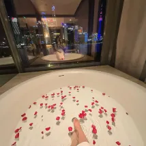 Kamar ini memiliki pemandangan Bund dan Lujiazui yang indah, yang merupakan tempat terbaik untuk menikmati pemandangan. Kota Raffles di dekatnya juga sangat nyaman untuk makan dan berbelanja. Karena hari jadinya diumumkan sebelumnya, pihak hotel dengan cermat mengatur kamar dengan pemandangan yang indah, dan juga mengirimkan kue dan rangkaian kelopak bunga, yang ditaburkan di bak mandi hanya untuk berendam.