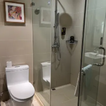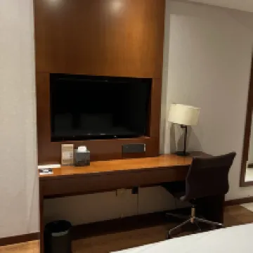 Pertama-tama, izinkan saya memulai dengan mengatakan bahwa ketika saya sampai di meja resepsionis, resepsionisnya tampak tidak senang. Ia bilang ada suara-suara renovasi yang sedang berlangsung di dekat sini. Saya bertanya apakah mereka bisa meng-upgrade kamar saya, yang saya pikir mungkin lebih baik. Mereka bilang tidak. Saat saya check-in, sudah hampir tengah malam, dan saya bilang kamarnya kemungkinan besar tidak akan penuh. Resepsionisnya menjawab tidak, tanpa basa-basi. Saya bercanda bertanya apakah saya boleh mengeluh jika terlalu berisik, tetapi tidak ada jawaban. Ketika saya sampai di kamar, dehumidifier-nya penuh debu, dan kepala pancurannya rusak, dengan air keluar dari ujung lainnya, yang juga sangat kotor. Begitu saya memasuki kamar, saya mendengar suara-suara keras dari kamar sebelah. Kedap suaranya sangat buruk, dan ada cermin yang menghadap ke tempat tidur, yang menurut saya kurang bagus, tetapi itu bukan masalah besar. Rekan saya juga terbangun pagi-pagi karena suara renovasi dan tidak bisa tidur nyenyak sepanjang malam. Dua bintang untuk pelayanan diberikan kepada resepsionis yang mengantar saya check-in. Dia sangat sabar ketika saya menerima faktur. Saya tidak merekomendasikan menginap di sini!