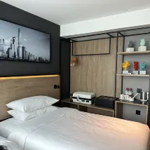 Kamarnya bersih dan rapi, staf resepsionisnya antusias dan perhatian, lokasinya bagus, ada robot pengantar makanan, rasio harga-kinerjanya relatif tinggi, dan Anda bisa mendengarkan musik sambil bekerja di lobi. Saya sangat puas. Resepsionisnya juga membantu memperpanjang ruangan selama setengah jam.