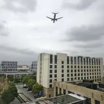 Karena dekat dengan bandara, pesawat terbang dari waktu ke waktu, dan kebisingannya cukup keras!