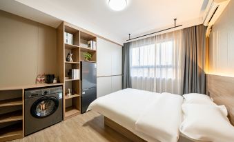 本次是週五臨時訂房間,價格在上海還可以了。因距離辦公地方近,也沒有理會是否偏僻。但是週六下午到了確實有點偏。意外的是去哪交通都很便利,距離酒店80米有公交站,去哪個景點都挺方便的。房間挺乾淨,房間有洗衣機和冰箱,對出差的人來説很友好,也有衣櫃和晾曬衣服的地方。性價比不錯的。