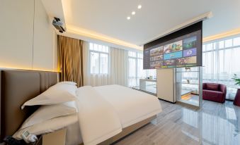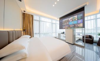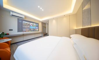 入住悦享投影大床房真的太驚喜了!房間乾淨整潔,床品柔軟舒適,躺上去像陷進雲朵裏一樣。最驚艷的是投影設備,畫質清晰、音效也不錯,關了燈就像在私人影院一樣,窩在床上看電影簡直是頂配享受。房東還很貼心地準備了小零食和飲品,細節滿滿。位置也很方便,周邊吃飯逛街都不愁,下次來還選這間!