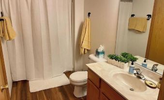 All the comforts of home -and great location. Laundry on site was key as well as fridge. We didn't get the door code until we were about 20 minutes away.