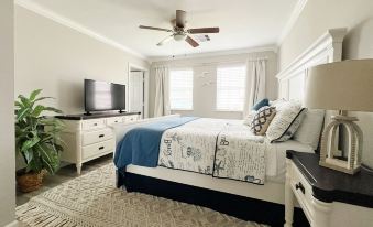 This house is better than advertised! It’s decorated so cute and they thought of everything. Kitchen stocked so well even though we didn’t cook much everything you could possibly need is there. The beach is so close and it’s so nice and clean. If you like collecting shells, they are everywhere. We had a fire and s’mores every evening. We went in a fishing charter and caught giant fish. Took the meat to pier 30 and they cooked it for us. We rented the golf cart and it was amazing. Highly recommend doing that. The communication with the host was excellent. Best we have ever had. That was super nice. Rent this house, you won’t be disappointed!