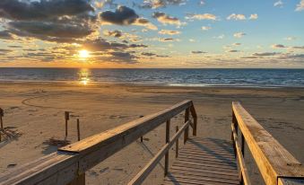 Less than a minute, 90 steps to the beach! 3 Bedrooms, 2 baths & an outdoor hot/cold shower! Sleeps 8. Updated restrooms & blackout curtains in all bedrooms. Downstairs includes a gas/wood BBQ pit, hot & cold water sink, plenty of outdoor seating, a Breeo fire pit & a 65" Smart TV! Home has 800 Mbps WiFi, Siri, 4K Smart TVs, full-sized washer & dryer, keyless entry, beach towels, toys, games, covered parking for 2 cars. Golf Cart (separate rental) seats 4 w/sound bar available upon request.About pets:No pets allowed.About checkOut:Check out before 11:00 AM.About children:Children allowed: ages 0-17.About customRules:No smoking in the home at any time..About checkIn:Check in after 4:00 PM.About smoking:Smoking allowed: in designated areas.About minBookingAge:Minimum age to rent: 25.About events:No events allowed.