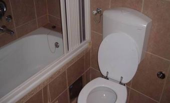 Room is equipped with a fridge, a kettle, a bath, a hair dryer and a wardrobe, safe. There is restaurant on the ground floor where we can serve breakfast for 6,oo E per person.
