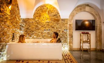 Tagliacozzo è gia' un paese stupendo, questo B e b è un gioiello, posto all' interno delle mura del centro storico, a pochi metri dalla piazza principale. La suite è qualcosa di pazzesco, pareti di pietra e soffitto a volta, con un letto comodo, una smart tv e soprattutto la spa in camera, sauna e vasca idromassaggio per due. In camera c'è anche la macchinetta del caffè e delle bottiglie di acqua, non manca veramente niente, la colazione si fa' al bar che sta in piazza, colazione abbondante e gustosa, con paste freschissime. Consiglio vivamente questa suite per coppie che vogliono vivere un esperienza intima e incredibile....complimenti.