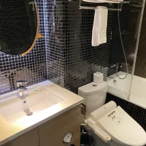Mangkuk toilet Toto yang memiliki fungsi penghangat dudukan! Ini merupakan nilai tambah meskipun pengering rambut agak lemah. Kebersihan juga tampak baik-baik saja!