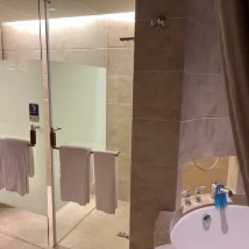 Itu sangat bagus, tetapi ketika Anda memasuki toilet, Anda dapat mendengar semua kebisingan (dan bagian belakang terbuka karena suatu alasan), dan bak mandi dan pancuran terpisah, tetapi pintunya terbuka di sisi tempat bak mandi berada, jadi susah sekali untuk bergerak,,,.