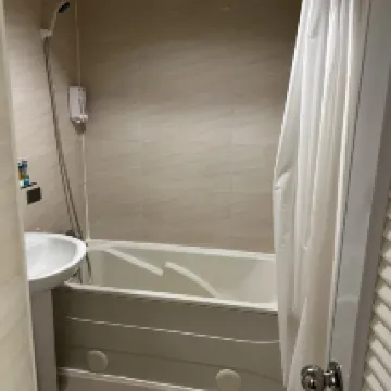 Kamar mandi dan tempat tidurnya lumayan, tetapi bagian ruangan lainnya sama sekali tidak mirip dengan foto yang ditampilkan. Semuanya sangat tua dan sebagian rusak. Wallpaper terkelupas dari dinding dan robek di beberapa tempat. Setidaknya alat pengering udara dan AC berfungsi. Siapa pun yang sensitif terhadap suara bising jalanan dan suara peralatan rumah tangga tidak akan bisa tidur di sini.
