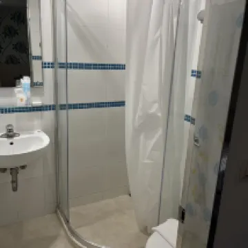 Lokasinya sangat nyaman dan harganya terjangkau. Kamarnya tidak terlalu luas, tetapi cocok untuk dua orang dan dua koper. Kamarnya bersih, meskipun ada sedikit debu di lantai berkarpet. Kamar mandinya sangat bersih dan dibersihkan setiap hari dengan penggantian handuk. Fasilitas termasuk sabun dan sampo. Secara keseluruhan, ini merupakan nilai yang baik untuk harganya.