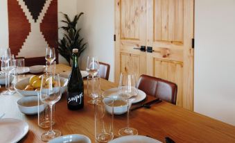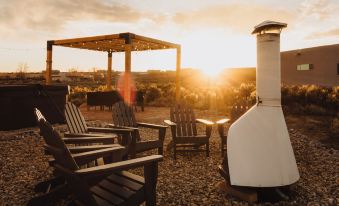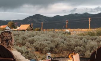Eat al fresco by the light of overhead string lights and take in the spectacular mountain vistas (sunrise and dusk are something special). Sitting next to or sitting in the Sage Swing amongst the sagebrush, you’ll hear the crickets, smell the sagebrush, and feel the breeze as you unwind!