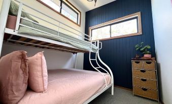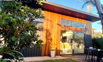 Experience relaxed coastal living in our modern two-bedroom apartment. Enjoy the convenience of a fully equipped kitchen, a serene outdoor BBQ area, and your own private sauna and outdoor shower, designed for ultimate relaxation and rejuvenation. The master bedroom features a comfortable queen bed, while the second bedroom offers a versatile double/single bunk—perfect for families or friends.