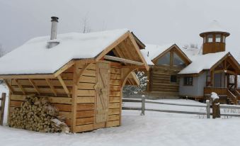 Outside there is a fire pit for roasting marshmallows and telling stories and a hot tub to soak in and look at the amazing stars. The property also has a bunkhouse for the kids to play and hang out. There is also a real wood fired Swedish sauna to enjoy.