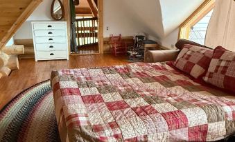Thistle Dew Cabin is a custom built log and timber frame home situated in the middle of 80 acres and boasts 360 degree mountain views. From the cabin porch enjoy your coffee while gazing at the backside of Grand Teton National Park's Grand Teton, Middle Teton and South Teton mountains. The cabin has 2 private bedrooms with queen beds (one with it's own small bathroom ). There are two lofts overlooking the living room; one with comfortable queen pullout (new gel mattress) and one with double bed (laddar access) suitable for teenagers and young adults. There is also an office space with a log desk.