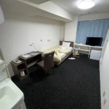 Meski dekat stasiun merupakan kawasan sibuk, tidak ada suara orang berbicara, jadi saya bisa menghabiskan waktu bersantai. Kamarnya luas, sekitar 10 tikar tatami, dan merupakan yang terbesar untuk hotel bisnis dengan satu hunian. Wastafel terpisah dari kamar mandi unit.