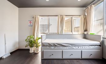 2 kamar tidur: 1 single bed dan 4 double bed kecil | 1 ruang tengah: 1 sofa bed dan 1 futon bed