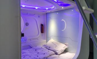 太空艙是可以的,燈光很有氛圍感,公區有些簡陋,但熱水洗澡都有,樓下交通小吃,附近有步行街,出行很方便,訂了上下2個倉,沒住過的人還是感覺挺新奇的。這家民宿的好處就是男女是分開兩個房間住的,所以女生艙裏沒有煙味,也沒有臭腳味,可見男人們有多可惡…