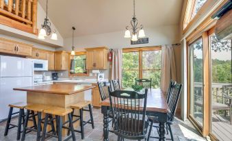 Buat diri Anda nyaman di pondok ini, yang memiliki fitur perapian.Dapur dilengkapi dengan oven, kompor, dan microwave.