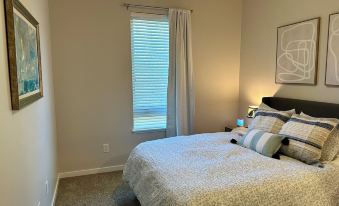 Stay in comfort in a newly built luxury condo! Offers in unit washer and dryer and each bedroom has its own attached bathroom! This space can sleep up to 6 with two queen beds, and and sofa bed. Extra blankets and linens provided. Guests will have access to community area on the 4th floor as well as access to everything in the unit. Free parking!