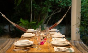 The Garden Suite of the villa is a completely self-contained downstairs floor of the Sea Urchin Villa. It has 2 bedrooms with queen beds in each and the tv room has 2 day beds. Perfect for a family vacation getaway or a soulful couple's retreat. Start your morning sipping a hot cuppa on the expansive verandah before strolling over to the sweetest swimming cove in all of Treasure Beach and afternoons reading a page turner in the swing chairs in the shade of the lignum vitae tree.About pets:No pets allowed.About checkOut:Check out before 11:00 AM.About children:Children allowed: ages 0-17.About checkIn:Check in after 3:00 PM.About smoking:Smoking is not permitted.About minBookingAge:Minimum age to rent: 21.About events:No events allowed.