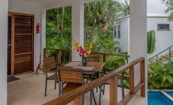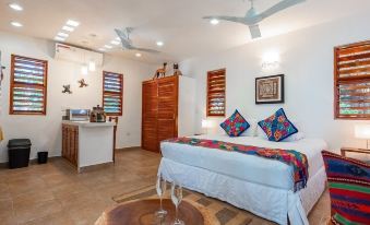 This private casita is a new studio apartment boasting a bright, airy open space just steps from the private beach and beside the new fresh water pool. The casita is self contained with a full kitchen, private bath, living area and lovely outdoor patio perfect for dining and entertaining. The apartment is modern with cement counters, stainless appliances, with traditional wood louvered windows (with screens) to let the beautiful sea breeze through.