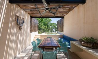 Poor communication from owner property, which is miles away on unpaved "roads" that became a mud lake cars could barely cross. Address is not correct and it took over an hour to get someone to answer and come help us into the unit. The unit was covered in construction dust, there was ongoing construction within the property, as well as a loud club across the street. None of the tvs worked. The qr code they give you in the unit to ask for help is broken and its impossible to get help. No cell signal and shoddy wifi. Master bedroom started leaking from the ceiling first night, flooded half the floor. Tried to get help numerous times no answer. The man who let us in gave us his number to call if we needed a taxi, he never amswered andwe were stuck for half the day trying to get a signal or get transportation. There was no water pressure at all in the showers or sinks, water barely hot and also brown. Laundry area litterd with construction debris and sketchy ladder you had to go under to access the machine. Pool on top floor was uninviting and seemed unclean. Plants were dead and still in pots. The place has no windows and feels like a 3d MC Escher labrynth with narrow stairs that feel like the stairs to hell. Do not rent.