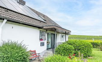 Very beautiful 2-family house, 2 storeys, surrounded by vineyards. In the resort 450 m from the centre of Bischoffingen, 2.5 km from the centre of Vogtsburg am Kaiserstuhl, 11 km from the centre of Breisach, in a quiet, sunny position in the residential district, 4 km from the lake, 5 km from the river. Parking at the house. Restaurant 700 m, bakery 500 m, bus stop "Bischoffingen Amthofplatz" 300 m, railway station "Burkheim Bischoffingen" 1.4 km, outdoor swimming pool 2.9 km. Walking paths from the house 10 m. Nearby attractions: Breisach am Rhein 11 km, Freiburg 24 km, Europapark 25 km. Well-known lakes can easily be reached: Burkheimer Baggersee 4 km. Hiking paths: Kaiserstuhl 100 m, Elsass / Frankreich 12 km. Please note: the owner lives in the same residence. "Weinbergblick", 2-room apartment 60 m2, on the upper floor. Cosy furnishings: large living/sleeping room with sloping ceilings with 1 sofabed (70 cm, length 200 cm), dining table and satellite TV (flat screen). Exit to the balcony. 1 room with sloping ceilings with 1 double bed (2 x 90 cm, length 200 cm). With sloping ceilings kitchen (oven, dishwasher, 4 ceramic glass hob hotplates, toaster, kettle, microwave, electric coffee machine). Bath/WC, double hand-basin. Heating. Large balcony 15 m2. Balcony furniture. Beautiful view of the countryside. Facilities: Internet (WiFi, free). Parking (1 car) at the house. Please note: non-smokers only. Smoke alarm.