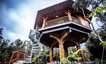 This secluded Treehouse is just minutes from the National park. Beautiful features, inside and out. Test out treehouse living while you enjoy Hawaii. Perfect for couples with 1 queen bed (We only allow 2 guests at a time) and is perfect for any romantic couple wanting a getaway. We provide the best mattresses money can buy for your perfect night sleep, and soft bamboo sheets that will make you not want to get out of bed in the morning.