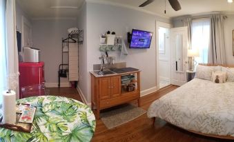 Check in was a breeze, we came to Waco to see the Mammoth site and relax for a few days. The studio was clean and had everything we needed; kitchenette was great so we didn’t have to eat every meal out, full bath with gorgeous shower, and the pool! It felt so private and secluded, yet was in a beautiful historic neighborhood with lots of stuff to do nearby. Helpful folder in the room with restaurants close by. It was wonderful!!