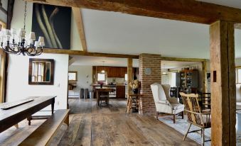 This 1840 barn has beautiful light and an open airy feel. Filled with local antiques collected over 35 years of Maine living, it is both rustic and elegant. The ambiance invites you back to a simpler era of reading, board games and badminton. It is perfect for extended families or old friends to get together. Walk to the water, picnic in the field, bicycle down the quiet road or just hang out on the porch and watch the sun set.