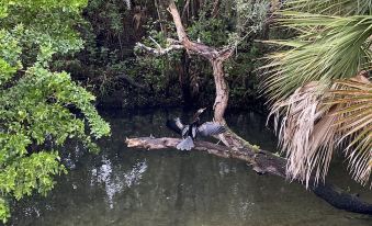 This charming and cozy waterfront apartment is in the heart of Warm Mineral Springs. It has its own private entrance and access to the water flowing from the Warm Mineral Springs . This apartment is a 10-minute walk away from the Warm Mineral Spring Fountain Of Youth. It has a private driveway in which all guests can park their cars. The stream in the back of this property is safe to swim in and flows directly from the Fountain Of Youth.About pets:No pets allowed.About checkOut:Check out before 10:00 AM.About children:Children allowed: ages 0-17.About checkIn:Check in after 5:00 PM.About smoking:Smoking is not permitted.About events:No events allowed.